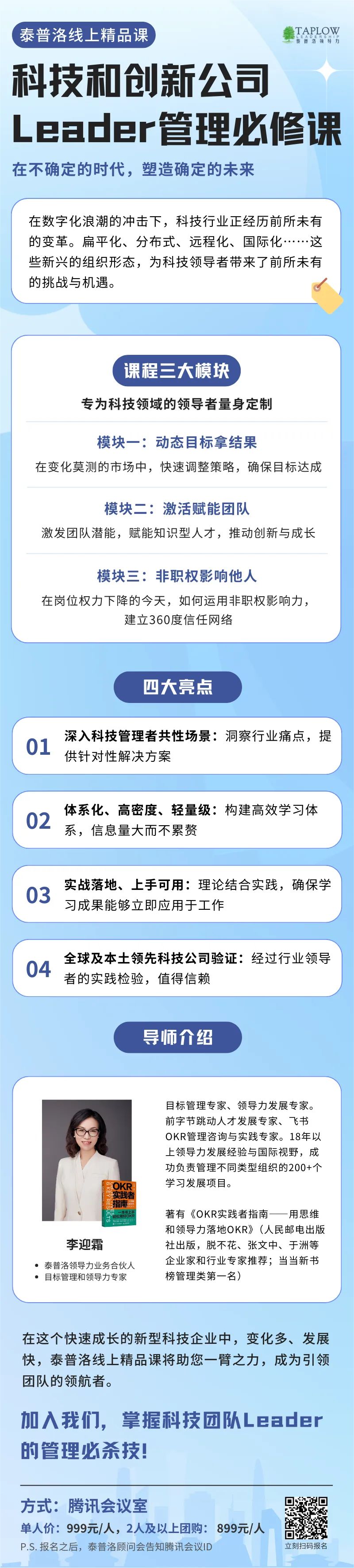 在本期直播《创新驱动企业的人才管理和领导力》中,《OKR实践指南》作者、泰普洛领导者业务合伙人