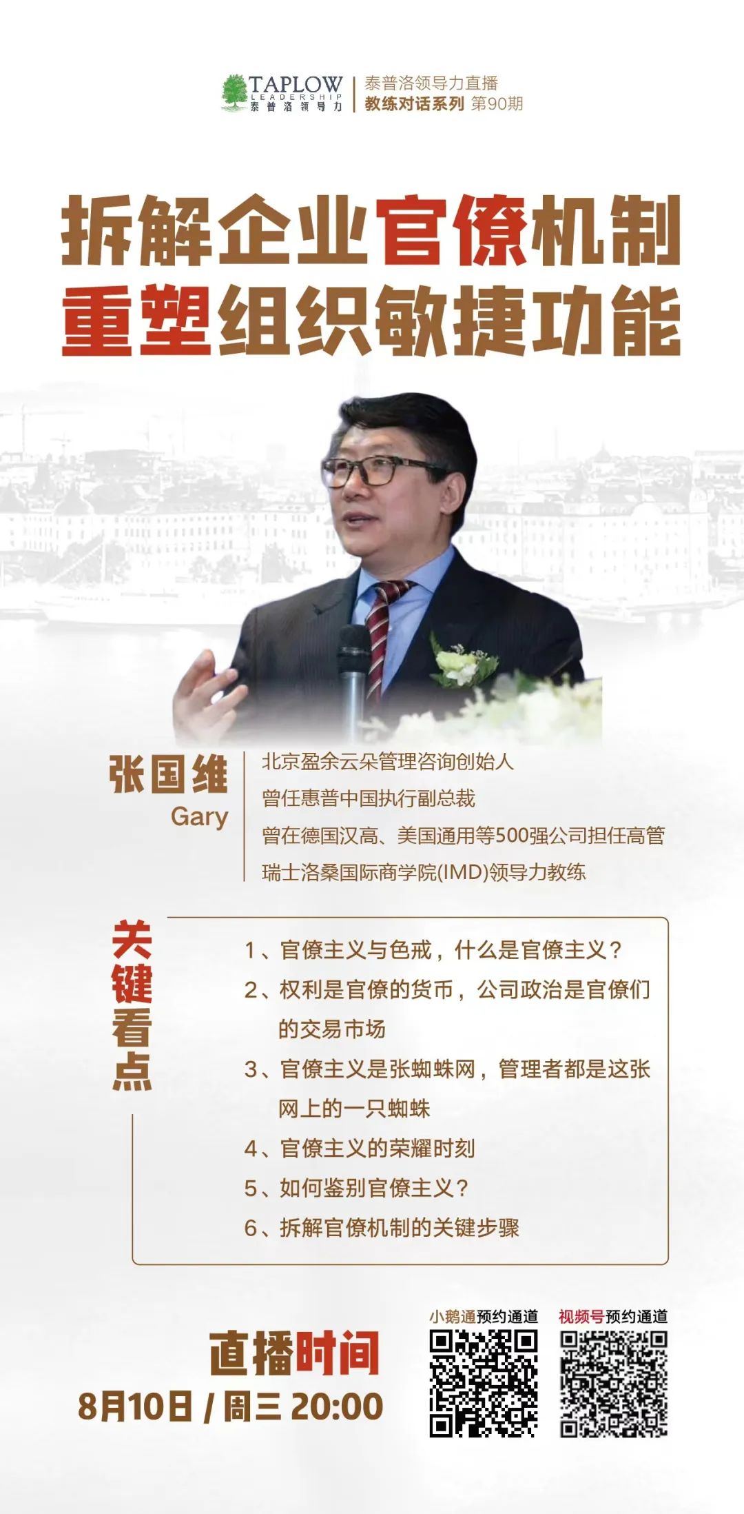 直播预告|张国维谈“拆解企业官僚机制,重塑组织敏捷功能”
