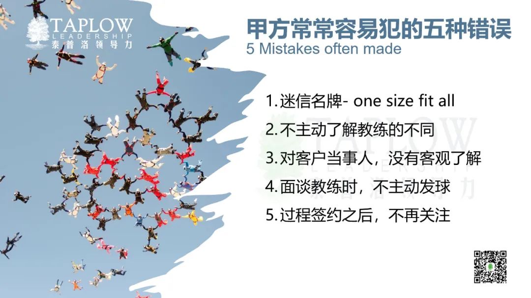 当甲方所作的准备越详实,对企业和被教练者的需求,了解的越透彻,找的教练越匹配客户端的需求,越容易找到最合适的教练。